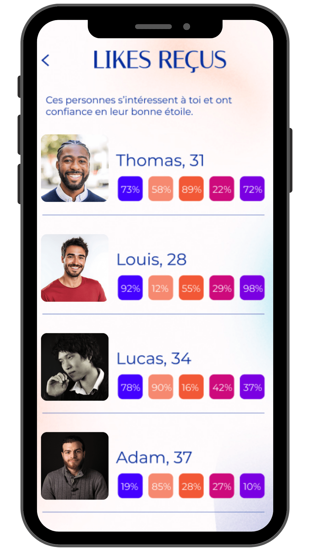Tu peux dès maintenant découvrir notre algorithme en testant ta compatibilité astrale avec des personnes de ton entourage.
